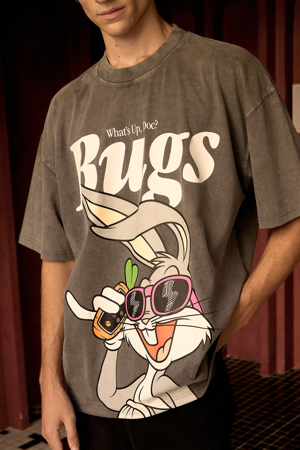 The Bugs On Call Oversized T-shirt for men in grey is a casual yet stylish addition to your wardrobe. Made from 100% cotton, this soft and breathable oversized tee for men offers a comfortable, relaxed fit, perfect for everyday wear. Featuring a fun Bugs Bunny design, it's a playful and eye-catching way to showcase your love for classic cartoons. Whether you're lounging at home or out with friends, this oversized T-shirt delivers both comfort and style with ease. This oversized tshirt for men is officially licensed Looney Tunes merchandise, ensuring authentic designs and premium quality.
