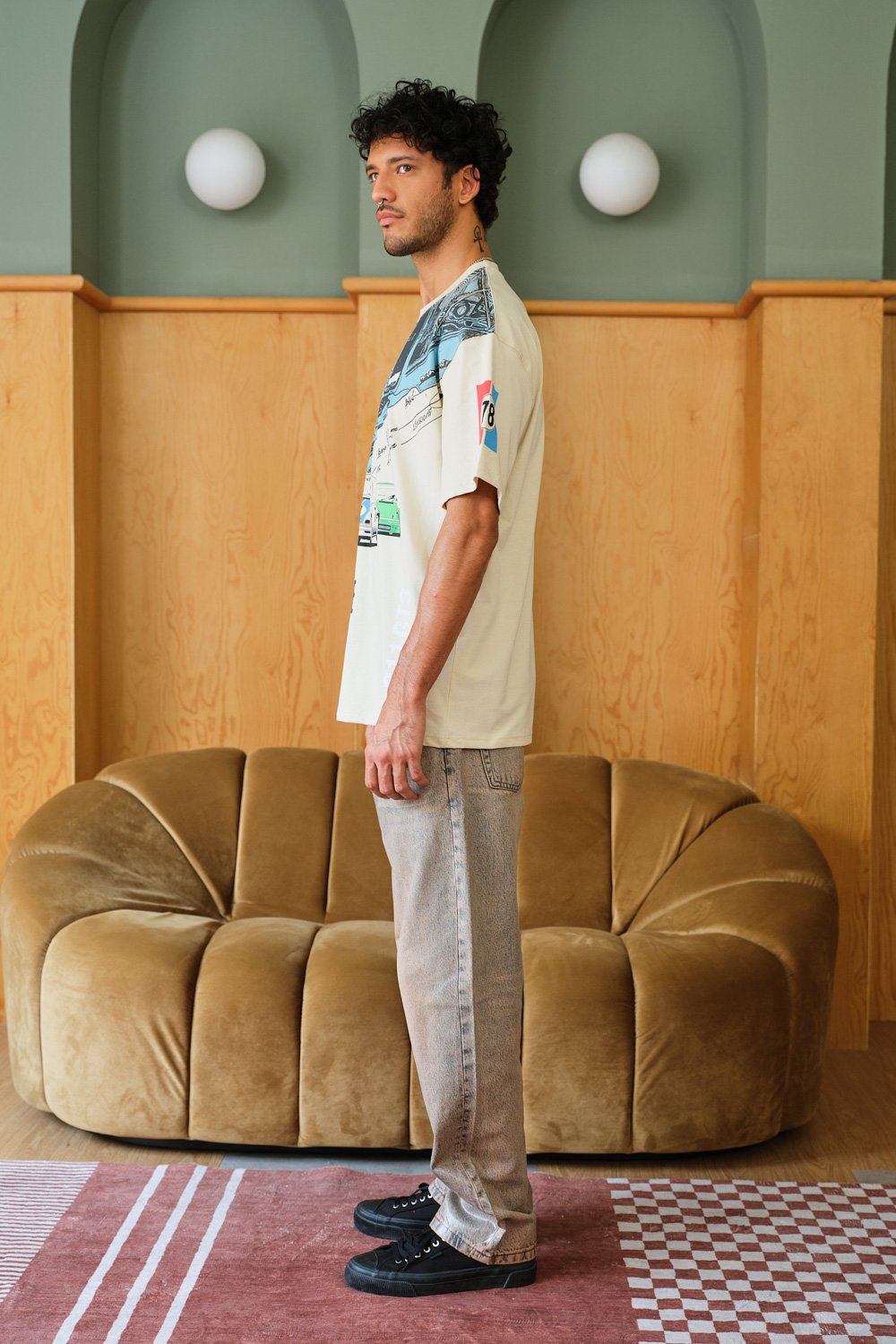 Pay homage to automotive history with the Bonkers Corner Classic Ride Oversized Tee. This ultra-comfy tee features a bold graphic showcasing a classic 1985 Porsche, a true symbol of timeless design. Crafted from 100% cotton for a luxuriously soft feel, it offers a relaxed, oversized fit for all-day comfort. Channel your inner gearhead and pair it with dark wash jeans and sneakers for a casual day out, or throw it on over a henley for a layered look. This oversized tee for men injects a dose of automotive passion into your wardrobe and lets you showcase your signature Bonkers Corner style with a touch of vintage coolness.