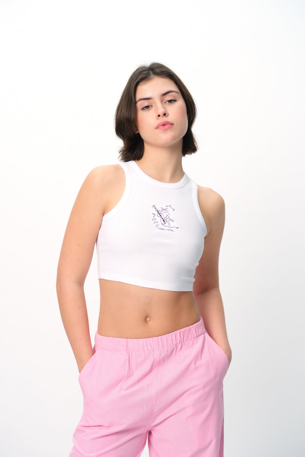The Death Metal Ribbed Tank is the perfect blend of edgy style and everyday comfort. Made from a soft and breathable mix of 60% cotton and 40% polyester, this white ribbed tank offers a flattering slim fit with a touch of stretch for easy movement. The bold design adds a statement element, making it a versatile piece to pair with jeans, skirts, or shorts for a laid-back yet striking look. Whether you're heading out or lounging at home, this tank delivers effortless style with an attitude.