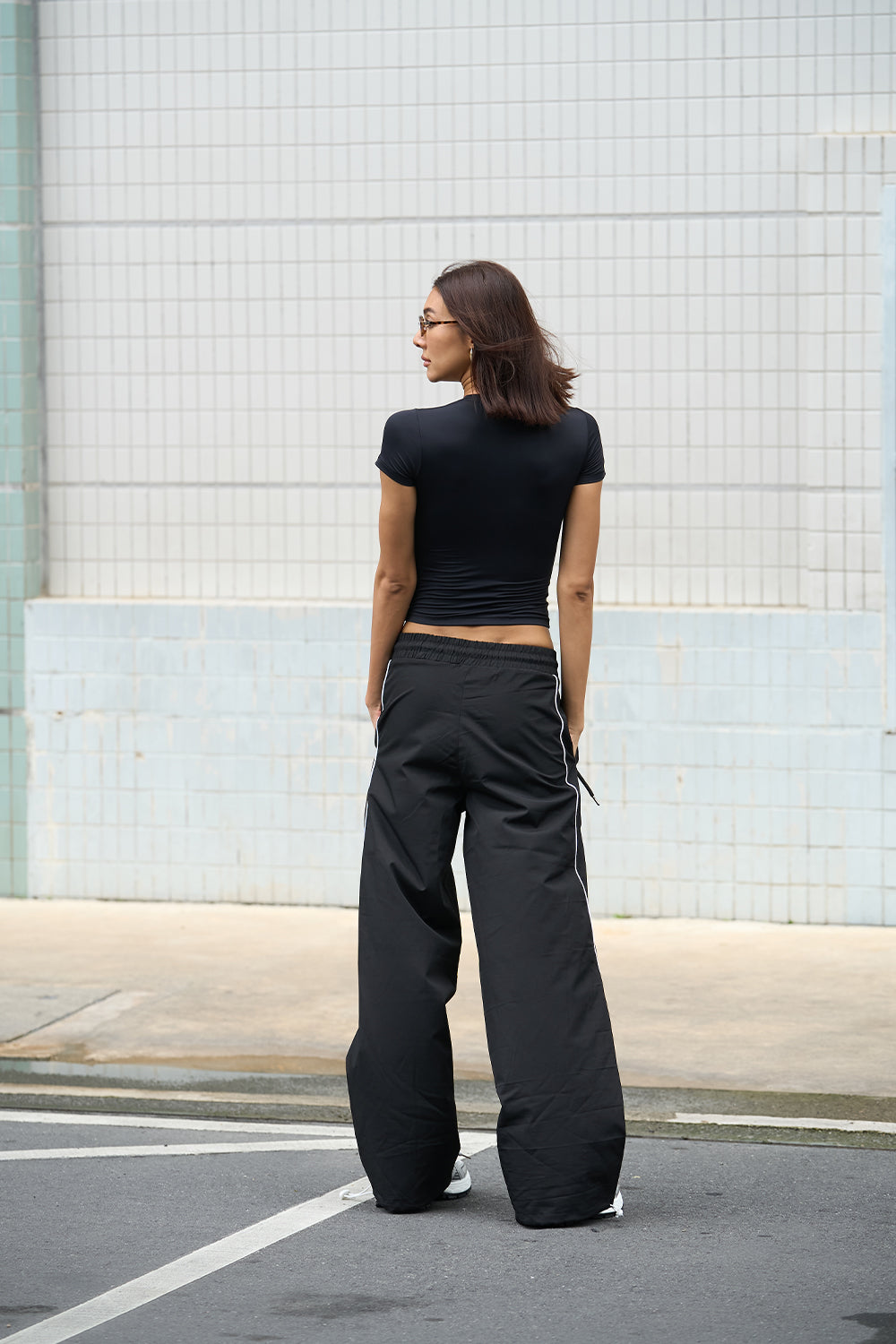 Step up your streetwear game with our black sporty deconstructed loose pants. Designed for both style and comfort, these pants feature a unique deconstructed look that adds a contemporary edge to your outfit. Made from high-quality, breathable fabric, they offer a loose, relaxed fit that ensures freedom of movement and all-day comfort. The sleek black color pairs effortlessly with any top, while the sporty design adds a modern touch. Ideal for casual outings or lounging, these pants blend functional design with a stylish, on-trend aesthetic.